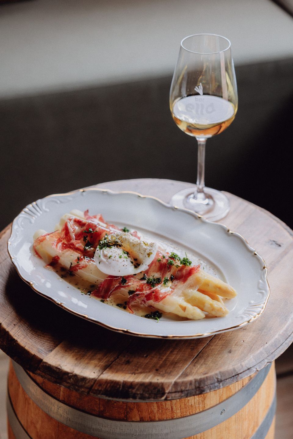 Die Spargelsaison ist eröffnet! Bei Bar Ella genießen Sie Spargel à la Ella mit Pata Negra, Beurre Blanc und einem pochierten Ei. 🤩