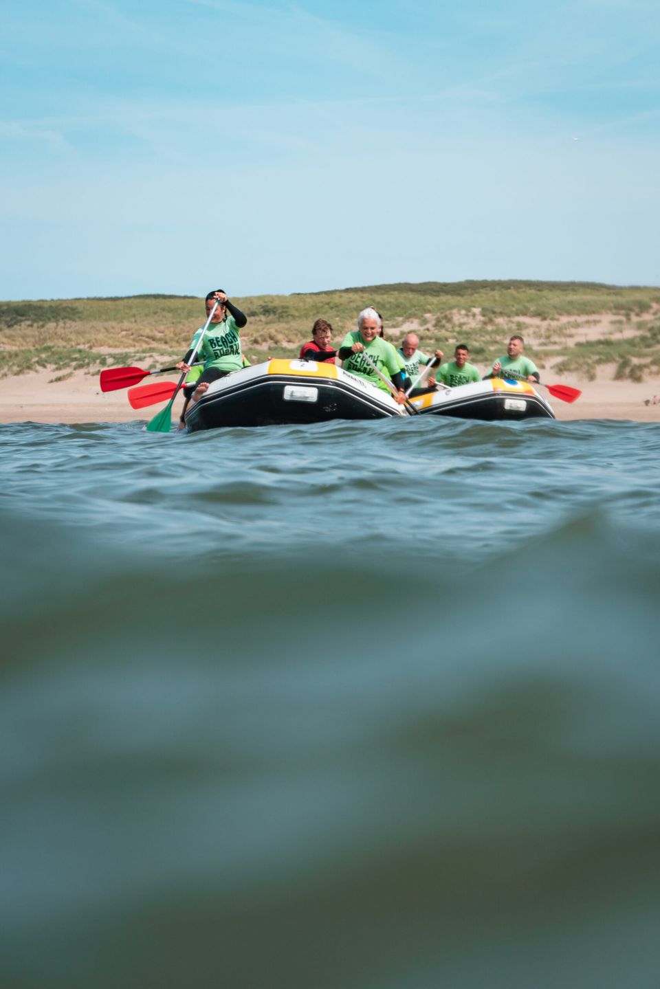 Tijdens deze activiteit zullen jullie samen op een opblaasbare raft stappen en de golven bedwingen, terwijl jullie de kunst van teamwork en navigatie op zee onder de knie krijgen. Voel de adrenaline terwijl jullie over de golven glijden, en werk samen om jullie weg door de branding te vinden. Dit is een perfecte oefening in teambuilding, waarbij jullie al surfend op de golven terugkeren naar de kust.