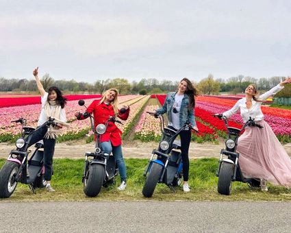 From April to mid-May, enjoy the tulip fields of the Bollenstreek in complete silence on an elect...