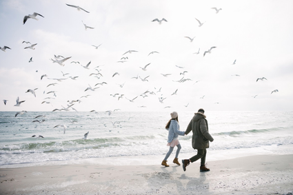Holding hands on the beach on Valentine's Day