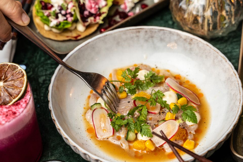 Spicy salmon taco — avocado · tempeh · tandoori