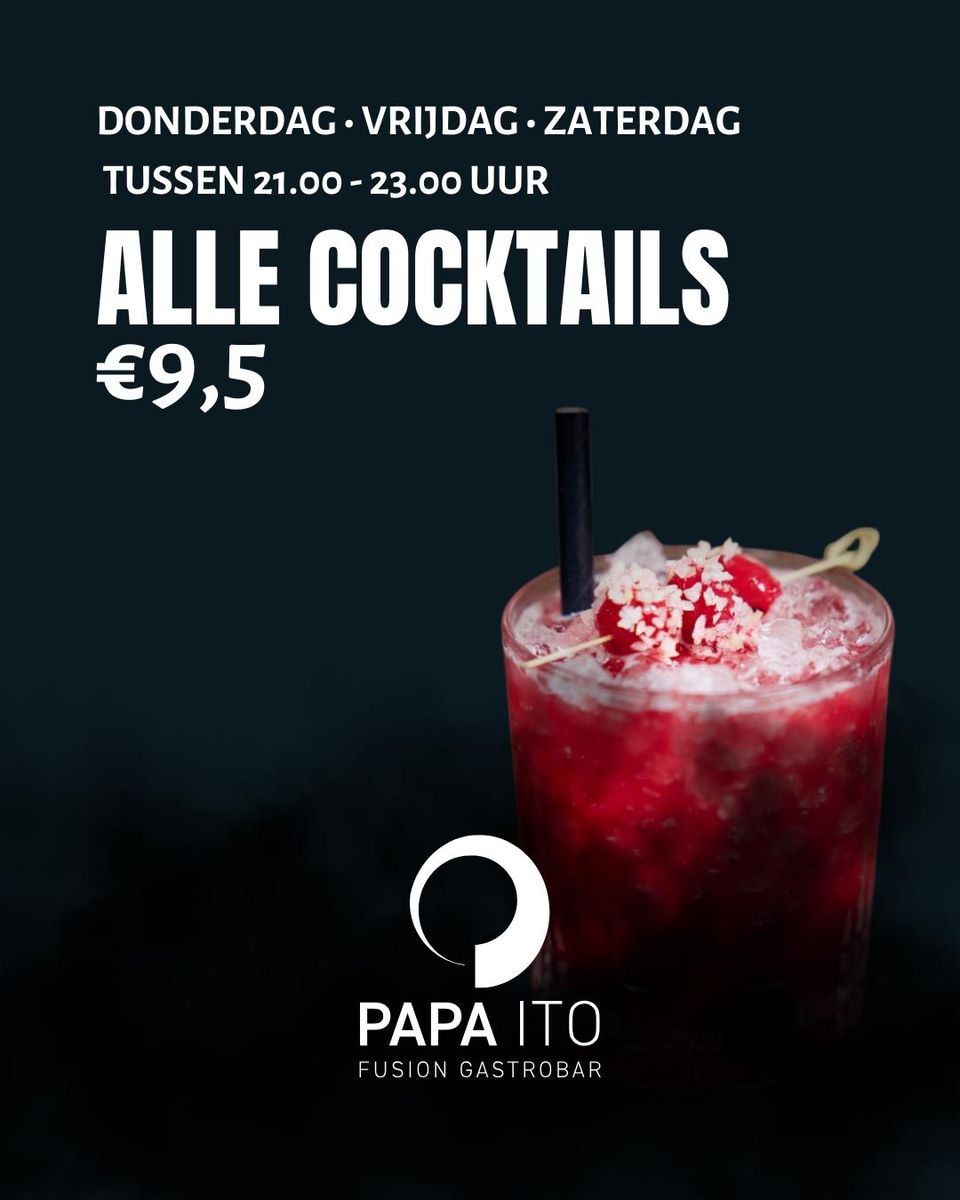 De gehele maand december vanaf donderdag t/m zaterdag Cocktail Night bij Papa Ito in Noordwijk. Alle cocktails tussen 21:00 en 23:00 uur voor €9,50.