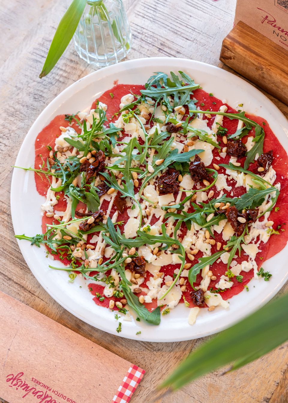 Rundercarpaccio met truffelmayo I Pijnboompitten I Parmezaan I Rucola