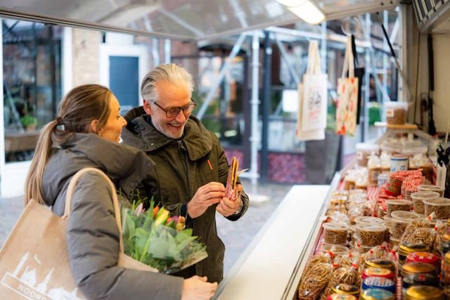 Beleef de gezellige sfeer van de weekmarkt op het Kloosterplein. Terwijl de geur van verse stroopwafels je tegemoet komt, wandel je langs kramen vol mooie bloemen voor in de vaas, smaakvolle kaasjes, fijne worstjes, knapperig brood en nootjes voor bij de borrel. Alles komt hier samen: vers, lokaal en gezellig. Een plek waar je niet alleen boodschappen doet, maar ook even geniet van het echte marktgevoel.