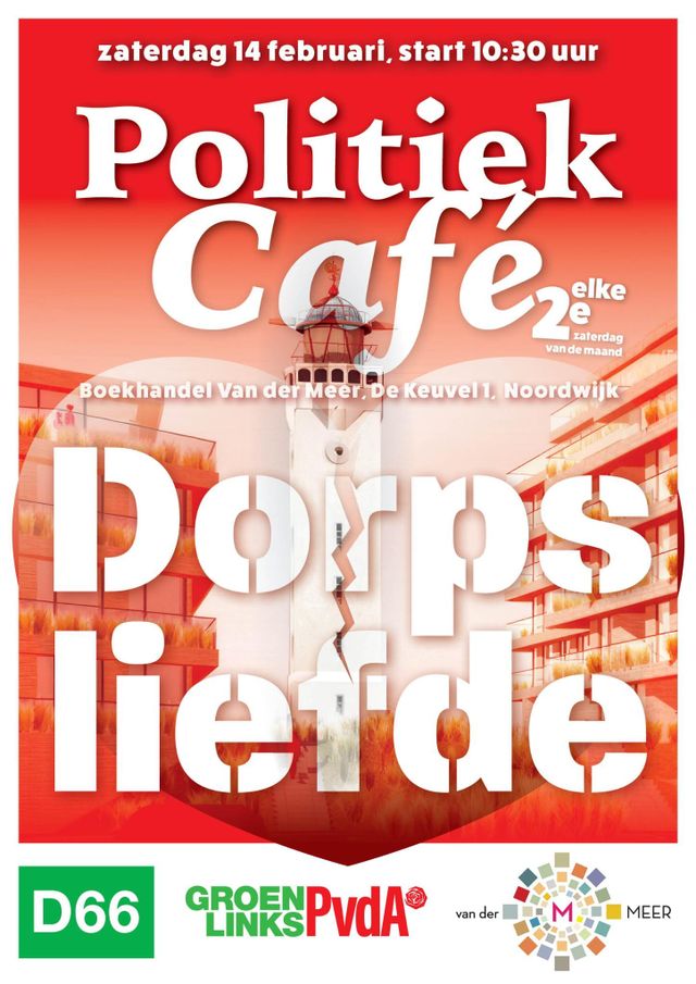 Op de dag van de liefde, organiseren GroenLinksPvda en D66 Noordwijk een Politiek Café over Dorpsliefde in het Cultuurcafé van Boekhandel van der Meer.